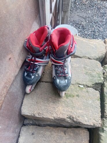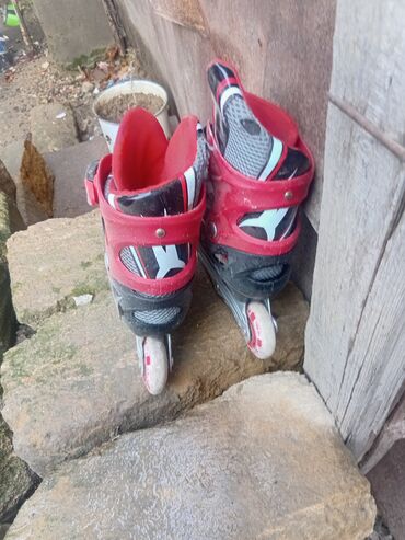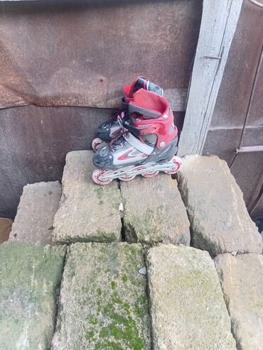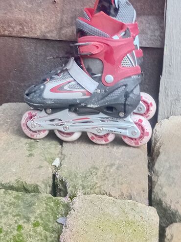 Uşaq üçün tənzimlənən inline konkis dəsti - Rəng: qırmızı-qara - 4 təkərli alüminium şassi - “PUSH” düyməsi ilə ölçü tənzimlənməsi (böyüməyə uyğun) - Bağlanma sistemi: üstdən sürətli buqel klipsi,...