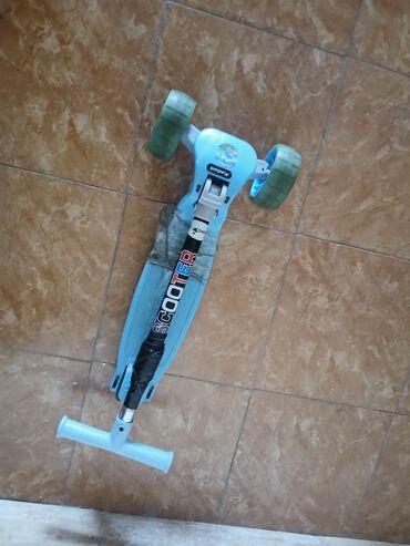 Qiymet 3Manat.Unvan yeni gunewli.catdirilmada ede bilerik.Mavi rəngdə, üç təkərli uşaq skuteridir. Skuterin ön tərəfində iki təkər, arxa tərəfində isə bir təkər yerləşir. Bu dizayn sabitliyi artırır və kiçik yaşlı uşaqlar üçün daha təhlükəsiz sürmə təcrübəsi təmin edir. Yüngül çəkisi sayəsində asanlıqla daşına bilər və uşaqların əyləncəli vaxt keçirməsi üçün idealdır. Skuterin sükanı uşaqların boyuna uyğun tənzimlənə bilər. Təkərləri davamlı materialdan hazırlanmışdır ki, bu da müxtəlif səthlərdə rahat hərəkət etməyə imkan verir. Bu skuter uşaqların açıq havada aktiv vaxt keçirməsi və motor bacarıqlarını inkişaf etdirməsi üçün əla seçimdir.