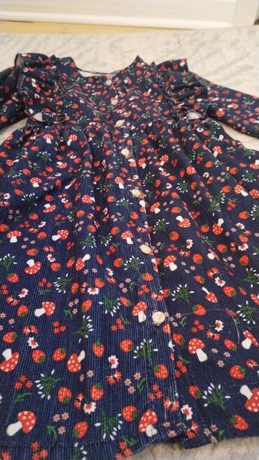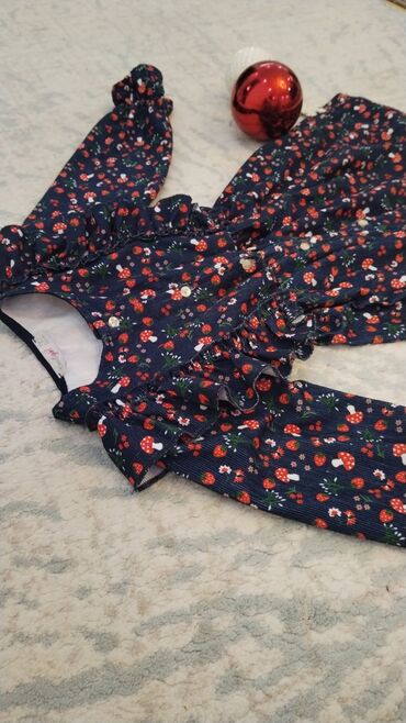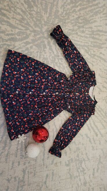 Çiçək naxışlı qız uşağı üçün don - Dizayn: Xırda çiçəkli naxışlarla bəzədilmiş, tünd göy fonlu model - Yaxa: Dairəvi - Qol: 3/4 uzunluqda, yüngül büzgülü - Bel xətti: Yığma detallı, ətəyi aşağıya ...