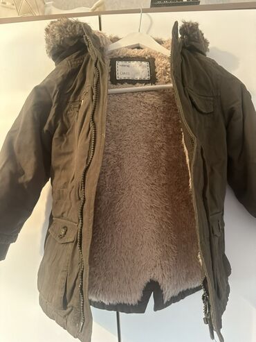 Uşaq üçün qışlıq parka - Rəng: zeytun-yaşıl Uşaq gödəkçəsi Şəki rayonu Baş Layısqı kəndindədir. - Model: kapüşonlu, süni kürklü kənarlarla - İçi: yumşaq, isti şerpa/plyuș astar (ağ rəngdə) - Qol ...
