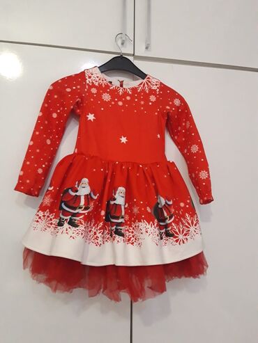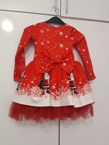 - Rəng və dizayn: Parlaq qırmızı fon, ağ qarlı naxışlar, ulduz və qar dənəcikləri; ətək hissəsində Şaxta baba (Santa) çapları
