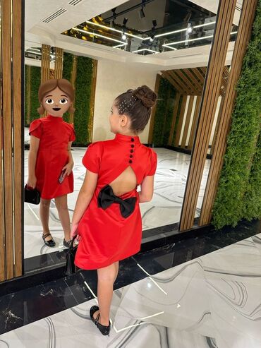 Qırmızı qız uşağı paltarı 1-2 dəfə geyilib. - Rəng: parlaq qırmızı -