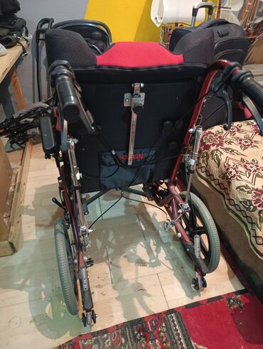 Manual əlil arabası - Rəng: qırmızı çərçivə, qara oturacaq və arxa söykənəcək - Geniş oturacaq və bel hissəsi: nəfəsalan parça - Yan qol dayaqları: yumşaq, rahat, sabit - Ayaqaltılar: ayrı-ayrı, t...