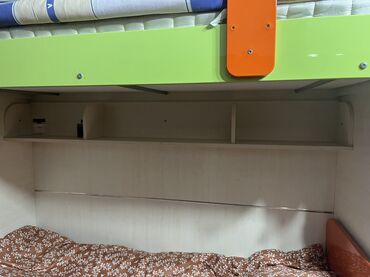 - Çarpayıların arasında uzun divar rəfi: bölməli, kitab, oyuncaqlar və xırda əşyalar üçün.
