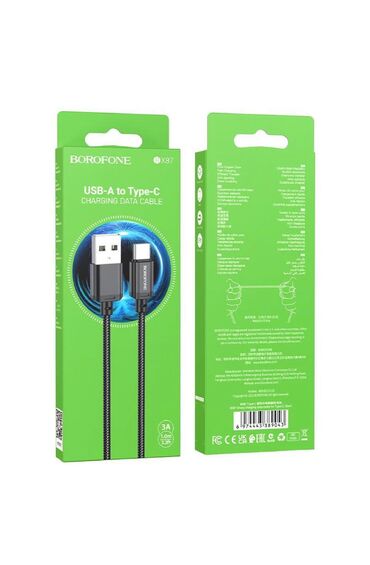 Borofone-dan USB-A -dan Type-C-yə şarj və məlumat kabeli. Qara rəngdədir və müasir cihazların əksəriyyəti ilə uyğun gəlir. Telefonu və ya digər cihazları kompüterə qoşmaq, həmçinin enerjisini doldurmaq üçün əlverişli seçimdir.