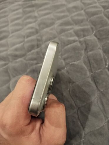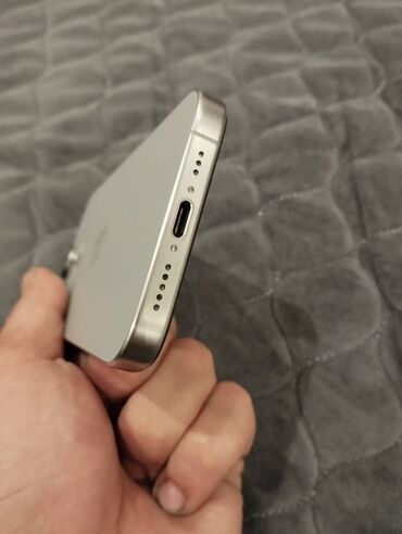 Apple iPhone (Titanium göyərti rəngə bənzər gümüş ton). USB‑C portlu model.