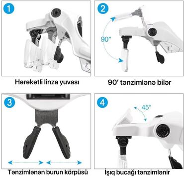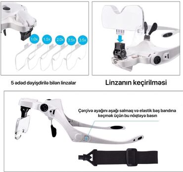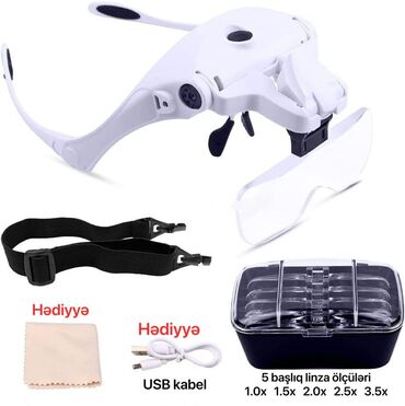LED işıqlı başa taxılan böyüdücü eynək dəsti