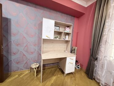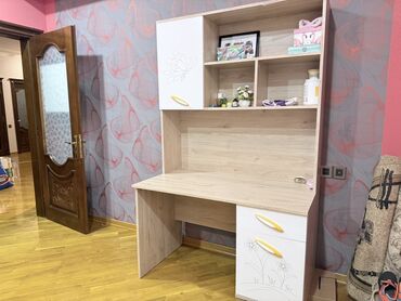 Uşaq/yeniyetmələr üçün funksional yazı masası və üst dolablı kitab rəfi