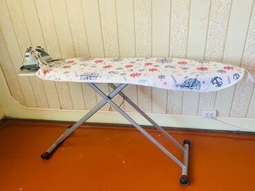 - Ütü masası: Dayaqlı, hündürlüyü tənzimlənən metal konstruksiya. Geniş, uzunsov iş səthi, dəniz temalı üzlük (çıxarılan/parça örtük). Yan tərəfdə ütü üçün ayrıca platforma və kabelin rahat yığılması üçün yer var. Sürüşmənin qarşısını alan ucluqlar, sabit X-formalı ayaqlar.