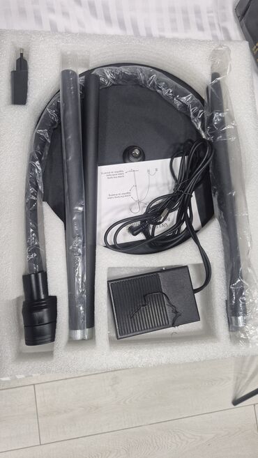 - Komplekt: altlıq, dirəklər, elastik qol, UV başlıq/lampa yuvası, ayaq pedalı, qidalandırıcı adapter, montaj üçün təlimat.