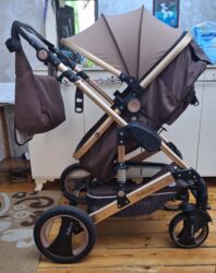 Belecoo uşaq arabası əla vəziyyətdədir 3-4 ay istifade olunub.– qızılı şassili, qəhvəyi/bej rəng kombinasiyası. -Əlavə olaraq üzərində uşaq arabasının öz çantası və xadenok verilir Xüsusiyyətlər:...