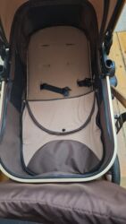 Uşaq arabası – şassi + oturacaq bloklu Xüsusiyyətlər: - Rəng: tünd qəhvəyi (neylon/parça örtük, kapüşonlu) - Çərçivə: möhkəm metal şassi, amortizator yaylarla - Təkərlər: iri arxa təkərlər və dönə...