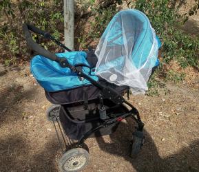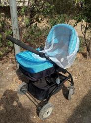 Bebetto firmasi. Sumkasi, 2 qış üçün çexolu, agcaqanad ucun setkasi, yaqis ucun klyonkasi, kenqurusu var. 2 hisselidir, hem uzaniq hem oturaq veziyyetde olur. Oturacaq olan hisse masin kreslosu ki...