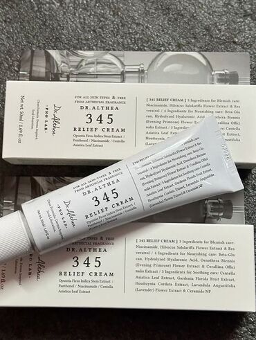 Məhsul: Dr. Althea Pro Lab 345 Relief Cream – 50 ml (1.69 fl. oz.) Təsvir: - Üz və bədən üçün sakitləşdirici, nəmləndirici krem. - “For all skin types & free from artificial fragrance” qeydli for...