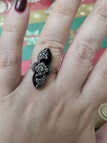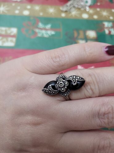 Gümüş üzük – 925 ayar - Brend: “Сокровища Агры” (etiketdə göstərilib) - Qoşma: şponlu qara daş (etiketdə “вставка: цирконий” qeyd olunub – zirkon) - Ölçü: 17.5 - Kütlə: 11.0 q - Dizayn: iri, çoxüzl...