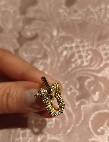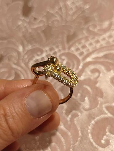 Zərif dizaynlı qadın üzüyü 18razmerdi təzədi - Material: sarı qızıl tonunda gövdə (metal ərintisi), parlaq çxıraqlı daşlarla bəzədilmiş. - Dizayn: yumru, “klaster” üslubunda başlıq – bir neçə sıra ...