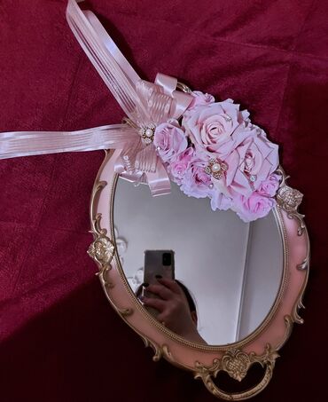 Xonça və nişan dəsti – əl işi, zərif dekorlarla - Böyük xonça qutusu: qızılı və gümüşü parıltılı parça ilə örtülü, kənarları qızılı kəndirlə bəzədilib, üst hissədə daşlı aplikasiyalar və dekorativ...