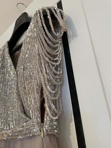 Məhsul: Zərif ziyafət/libas Ölçü 38/40 Rəng: Boz-mavi (şampan parıltılı atlas parça) Uzun, balıq kəsimli ve öndən razrezli don. Toy, nişan, məzuniyyət, xüsusi dəvətlər və rəsmi tədbirlər üçün şıq s...