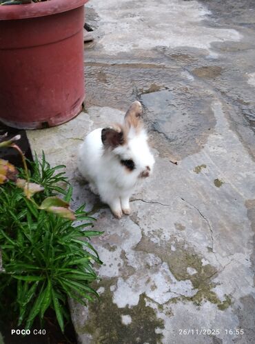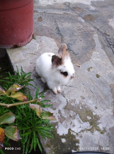 Fotoşəkillərdə görünən dovşan ağ-qəhvəyi ləkəli, tüklü və kompakt quruluşludur. POCO C40 ilə 26/11/2025 tarixində çəkilmişdir.
