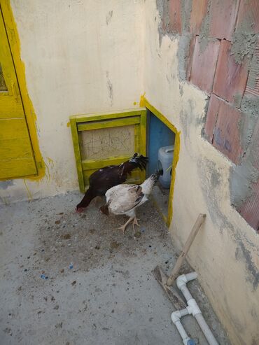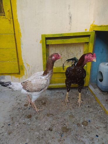 Satılır: yerli döyüş tipli cücələr/toyuqlar dəsti tək təkdə saaatlir - Şəkildə bir neçə baş quş görünür: qara-qəhvəyi, ağ və çılpaq-boğazlı (Malay/Asil tipli) fərdlər. - Fərqli rənglər: qara-ağ l...
