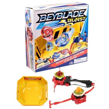 YeniВ Бэйблейд Берст инфинити есть 2 металлических волчка, пусковой механизм 2шт, арена 1шт, рукоятка для пускового механизма 1 шт.