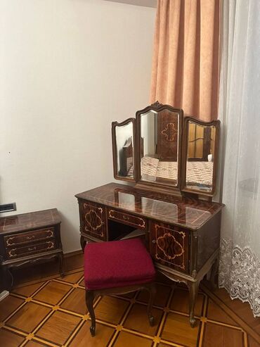 Yataq otağı dəsti – modern və eleqant dizayn Tərkibi: - 4 qapılı, güzgülü qarderob (daxildə asılqan bölmələri, rəflər və şkaf bölmələri) - İki tumba (yan stolçiklər, çekmecəli) - Komod/şkaf güzgü ...