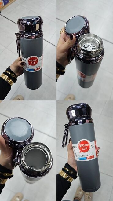 - İkiqat divarlı vakuum izolyasiya: içkiləri uzun müddət isti və ya soyuq saxlayır (etiket üzərində “HOT/COOL” göstəriciləri).