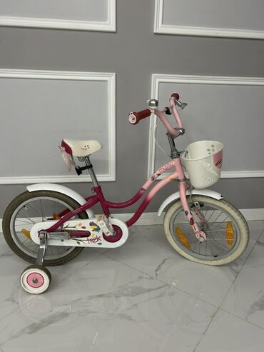 Uşaq velosipedi – qızlar üçün, çəhrayı rəngdə Xüsusiyyətlər: - Təxminən 16" ölçülü təkərlər (ön təkərdə dekorativ disk) - Ön səbət - Mexaniki qəlibli əl əyləci (ön) - Zınqırov tipli boru siqnalı -...