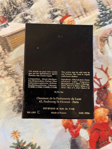 Məşhur Van Cleef & Arpels evinin Gem adlı parfum versiyası. Qırmızı-qaranlıq mozaika naxışlı, qızılı lövhəli orijinal qutu dizaynı ilə təqdim olunur. Paris istehsalı qeyd olunur.
