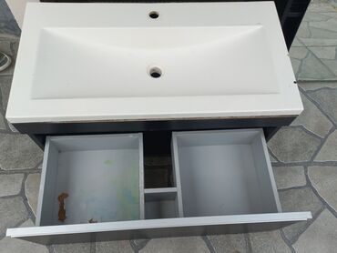- Üst hissə: ağ rəngli, masaüstü inteqrə lavabo (kran və sifon üçün 2 deşik hazır).