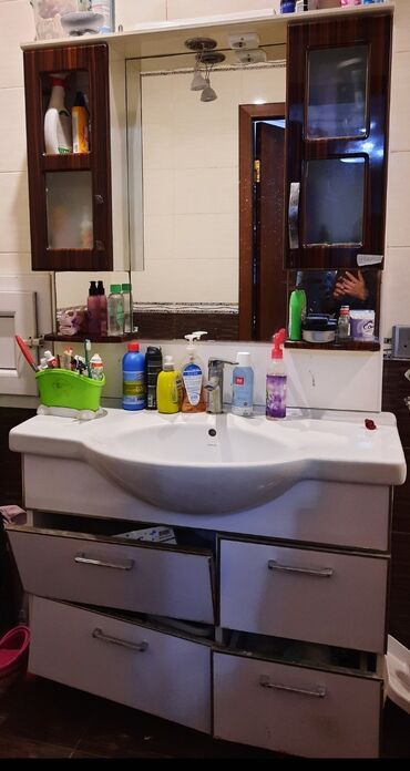 Vanna otağı üçün lavabo və güzgülü şkaf dəsti.