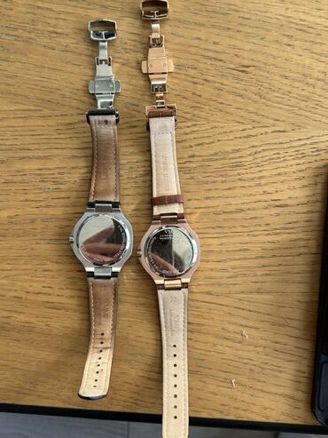 - Korpus: səkkizbucağa yaxın yuvarlaq forma, biri gül qızılı tonlu, digəri qara tonlu metal.