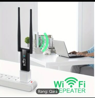 Təzə .WiFi repeater.wifi signali daha uzaq məsafəya çatdirmaq üçün istifadə edilir.2.4 hz işleyir.qiymeti 20 manat.