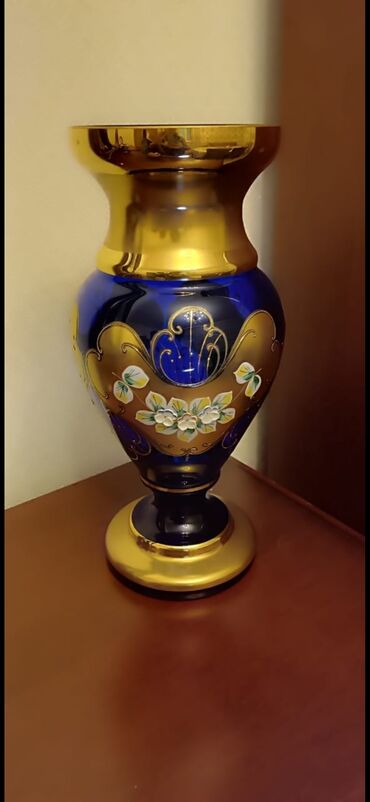 1ci 2 cut 300 manat 2 ci 2 cut 300 manat 4du bir 450 manat Bohemia Crystal şirkətinin qızılı və mavi rənglərdə şüşə vazası. Bu vaza qızılı örtük üzərində ağ çiçəklər və yarpaqlar, eləcə də mavi h...