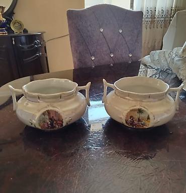 Porselen dekorativ vazalar (2 ədəd dəst) - Material: keyfiyyətli porselen - Dizayn: açıq işli (deşikli) kase formalı üst hissə, dalğalı kənarlar - Naqış: əl işi gül motivləri, çoxrəngli çiçək və y...
