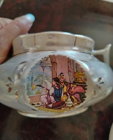 Məhsul: Dekorativ porselen kolleksiya dəsti Təsvir: - Şərq üslubunda əl işləmələri ilə bəzədilmiş 3 ədəd dekorativ porselen məmulatı. - 1 ədəd qapaqlı çaydan: tünd lacivərd fon üzərində qızılı nax...