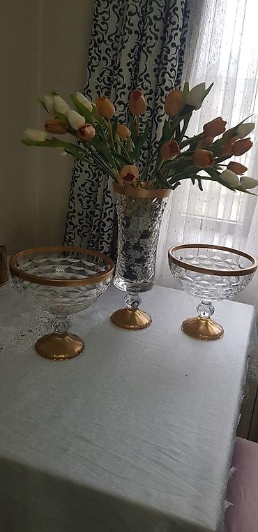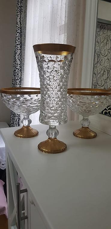 Xrustal vazalar dəsti Məhsul: 3 ədəd ağır, qalın divarlı kəsimli vaza