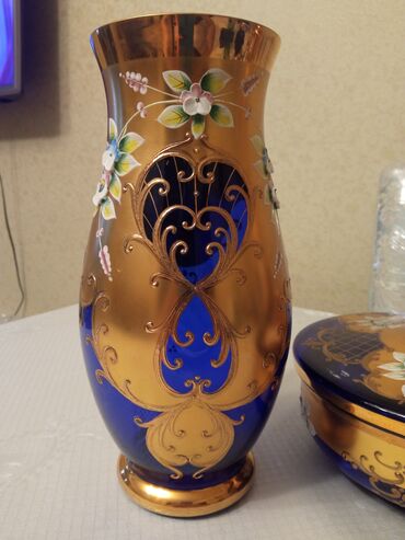 Bagema üslublu qab (Bohema)/Qeyd olunan qab qara rəngə malik keyfiyyətli Bohemiya şüşəsindən hazırlanmışdır.Yenidir.İşlənilməyib.İstənilən interyer üçün uyğun bir qabdır. #Bagema#Bohema#Qab#Qab-qacaq#