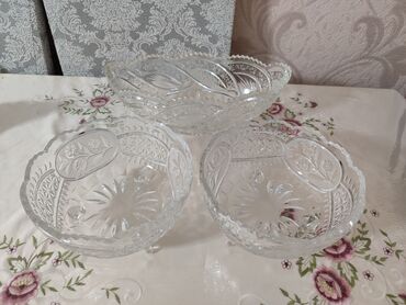 Xrustal qablar, konfet üçün cütü 25 manat ,meyvə üçün cütü 35 manat .ünvan Hövsan qəsəbəsi