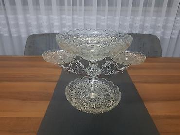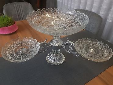 Kəsimli kristal dəst Çexiya - Dəst tərkibi: 1 ədəd hündür güldan + 2 ədəd meyvə qabı