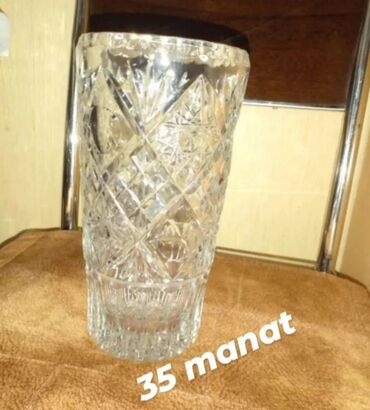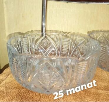 3 parçalı dekorativ kristal dəst - Tərkib: 1 ədəd hündür vaza və 2 ədəd şirniyyat/qab kimi istifadə oluna bilən geniş ağızlı kasalar - Material: tüstü rəngli kəsimli kristal şüşə; bürünc tonlu dek...