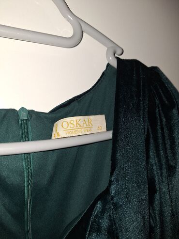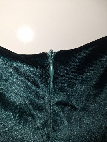 Zərif məxməri gecə donu - Rəng: tünd yaşıl/şüşə yaşılı - Parça: yumşaq məxmər, işıqda parıltılı - Dizayn: uzun model, ön hissədə drapeli büzgülər və aşağıda balaca yarıq - Yaxa: V-yaxalı - Çiyinlə...