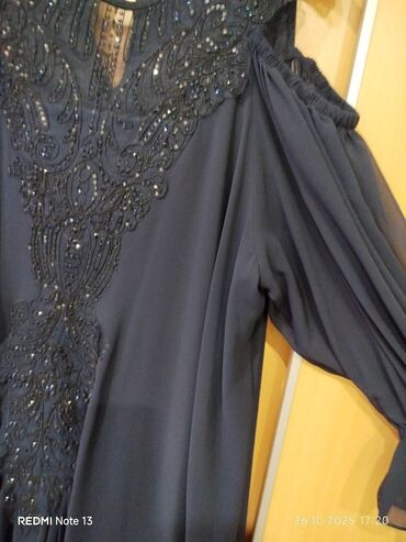 Вечернее шифоновое платье на подкладке. тёмно-синего цвета. 44 размер