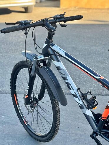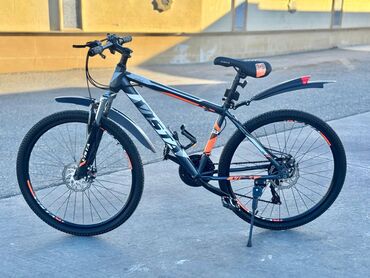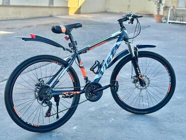 Velosiped satilir 26 liqdi hec bir problemi yoxdubela veziyetdedi sekildede gorunuyu kimi tekerlerin ikisde en yaxslarindan qoyulub kamerleri tezedi tormuzlari islekdi arxa skorusu islekdi bir orta...