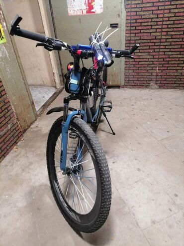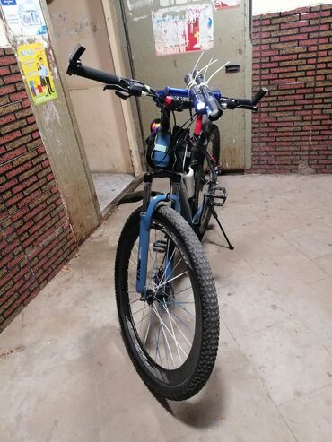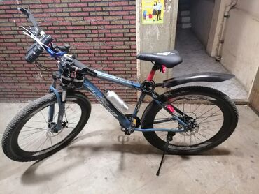 Zigzag dağ velosipedini təqdim edirəm. Mavi rəngdədir, qara elementləri var. Ön və arxa təkərlərdə qanadlar var. Sürət dəyişdirmə sistemi ilə təchiz edilib. Həm şəhərdə, həm də dağlıq ərazilərdə sü...