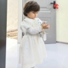Böyük ölçülü yumşaq oyuncaq ayı - Rəng: krem-ağ tüklü gövdə, qara gözlər, qəhvəyi burun - Geyim: mavi xallı don və baş tərəfində uyğun mavi qaşqabaq/aksesuar; köynəyin sinəsində ürək motivi və “LO...