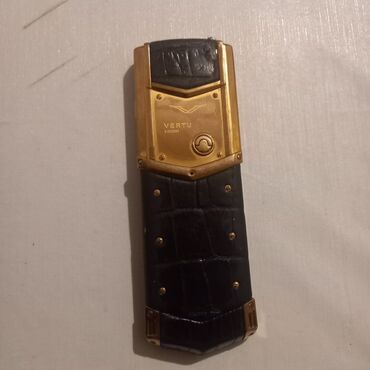 Vertu Signature mobil telefon - Korpus: qızılı rəngli metal çərçivə, arxa hissə dəri örtüklü; ön və arxa hissədə Vertu loqosu. - Klaviatura: fərqli, pilləli metal düymələr; işıqlanma simvolları; m...