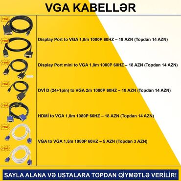 VGA kabellər SAYLA ALANA VƏ USTALARA TOPDAN QİYMƏTLƏ VERİLİR! ⭐Display