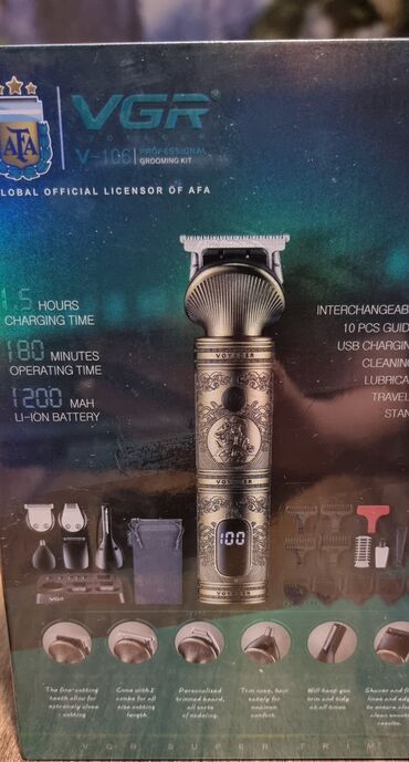 - 6 başlıq: saç/saxsı bıçaq trimmeri, kontur üçün T-bıçaq, ülgüc başlığı (foil), burun‑qulaq trimmeri və s.