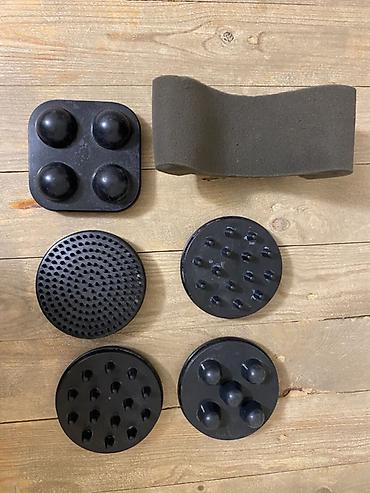 - Masaj üçün 6 ədəd müxtəlif başlıq (dərin toxuma, selülitə qarşı, drenaj və tonuslandırma üçün fərqli teksturalar) və elastik süngər kəmər.
